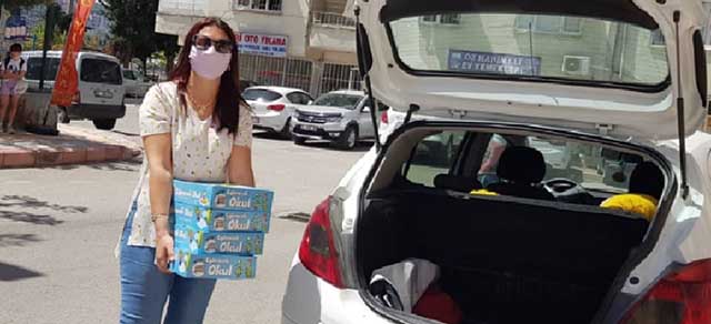 Okul öncesi 22 çocuğa çanta-kitap dağıttı Antakyalı bir kadın öğretmen,