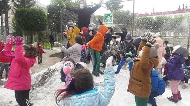 Belen Belediye Başkanı İbrahim Gül, bir okula, istek üzerine kamyon dolusu kar gönderdi. minikler kartopu oynadı, öğretmenler ise mangal yakıp sucuk partisi düzenledi.
