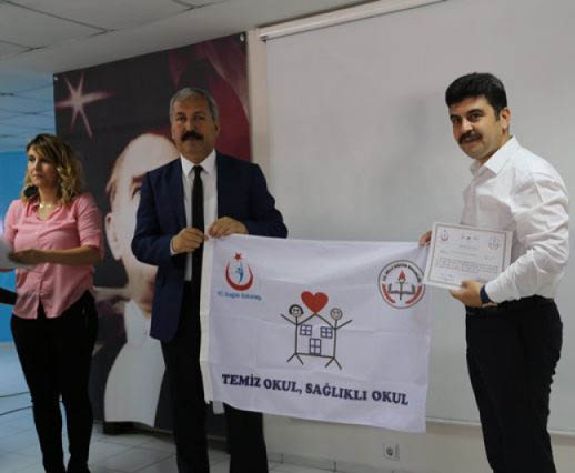 Sağlık ve Milli Eğitim Bakanlıkları tarafından, okulların temizlik ve hijyen konusunda teşvik edilmesi amacıyla yürütülen proje çerçevesinde, temizlik açısından 100 üzerinden 90 alan okullarına beyaz bayrak verilmektedir. -Cemil Yıldız-