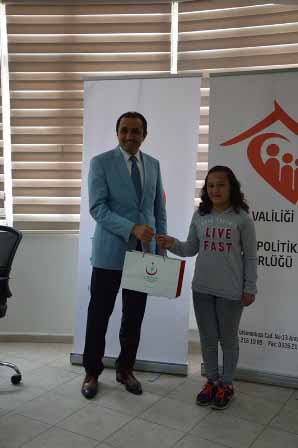 Resim yarışmasında dereceye giren yarışmacılara yönelik düzenlenen ödül töreninde, Halk Sağlığı Müdürü Dr. Bayram KERKEZ ve Aile ve Sosyal Politikalar Müdürü Ali SANDIKÇI tarafından tablet ve çeşitli hediyeler verildi. Organizasyonda ana kurum olan Hatay Halk Sağlığı Müdürlüğü adına da İl Müdürü Dr. Bayram Kerkez, 1-7 Nisan Ulusal Kanser Haftası etkinlikleri kapsamında düzenlenen ”Kanser” konulu resim yarışmasına desteklerini esirgemeyen Aile ve Sosyal Politikalar İl Müdürü Ali SANDIKÇI ile kurum yetkilileri Kevser SOYDAN SANDIKÇI, Ümit ÇAĞLAR ve Aytaç YILAN’a çeşitli hediyeler takdim etti ve teşekkürde bulundu. -Selvi Günay-