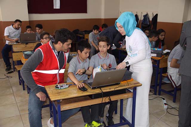 Türk Kızılayı, Kuveyt Türk Katılım Bankası ve Milli Eğitim Bakanlığı işbirliğiyle düzenlenen okullarda robotik kodlama eğitimi, ilimizde, İskenderun Hanife Uysal Ortaokulu’nda gerçekleşti. Hatay Kızılay Şube ve Hatay Genç Kızılay İskenderun Şubesi katılımıyla projeye destek verildi.