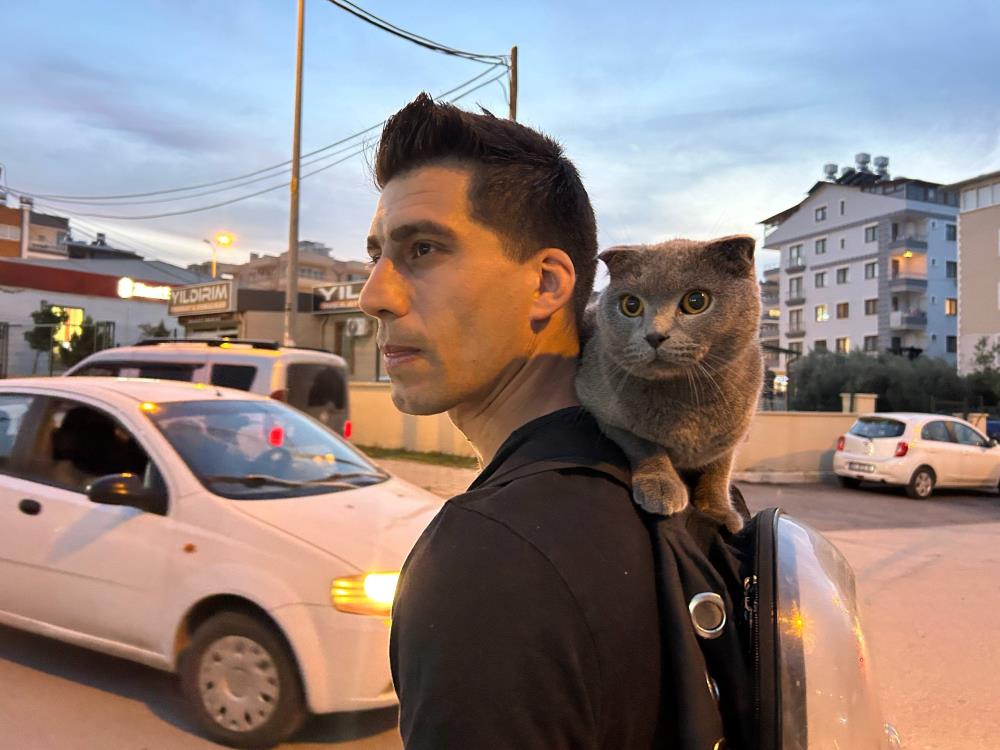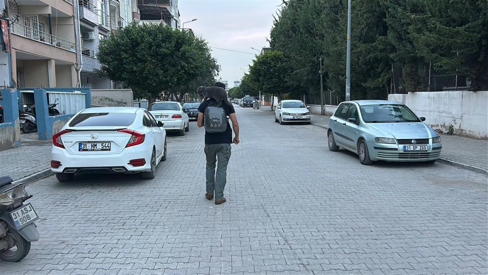 İskenderun’un Mustafa Kemal Mahallesi’nde yaşayan Mustafa Şimşek, iki yaşına giren kedisi Duman ile birlikte her gün sokaklarda turluyor. Evden çıkmadan önce kedisinin mama ve su ihtiyacını karşılayan Şimşek, Duman’ı özel çantasına koyarak dışarı çıkıyor ve ardından omzuna alarak gün boyu birlikte vakit geçiriyor.
