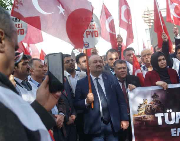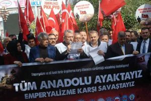 Şimdi güvenli bölgeden bahsediyorlar. Kimin güvenliği? Emperyalizmin aparatı, eli kanlı terör örgütü PYD’ye zaman kazandırmak olmasın? Birinci dünya savaşından sonra kabileleri devletleştirenler, bugün de terör örgütlerini devletleştirme peşinde koşuyorlar. Bu kez yakalandılar. Türkiye’nin çelmesine maruz kaldılar.”
