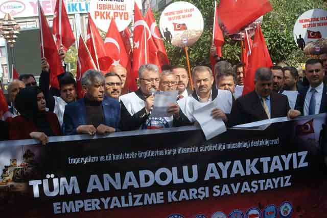 “Türkiye’nin terörle mücadele konseptini, terör örgütlerine yönelik ‘bitirici darbe’ hamlesini ‘savaş’ olarak göstermeye kalkışanlar var. Emperyal kulvarda, kapitalist blokta yer alan ‘sözüm ona’ müttefik ve dost ülkelerin Türkiye’ye yönelik örtülü savaş ilanını ‘sivil hassasiyeti’ ambalajıyla perdelemeye çalışanlar var.