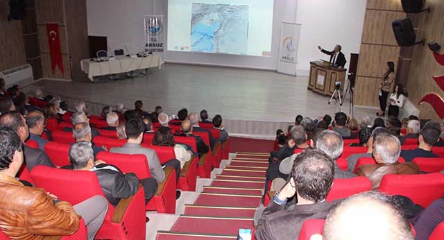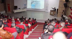 Arsuz’da düzenlenen Akıllı Kentler Zirvesi’nde konuşma yapan Kocaeli Üniversitesi Jeofizik Mühendisliği Bölümü Öğretim Üyesi Prof.Dr. Şerif Barış, “Hatay’da olası bir depremin etkileri” konulu sunumunda, depremi unutmadan öncesi, sırası ve sonrasında vatandaşların depremde ne yapması gerektiğini anlattı, bilinçlenmesinin önemine dikkat çekti.