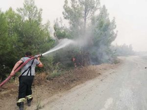 Havanın rüzgarlı olması sebebiyle söndürme çalışmalarında zorluk yaşayan ekipler, 5 Eylül’de başlayan orman yangınını 9 Eylül Çarşamba günü kontrol altına alabildi. -Cemil Yıldız-