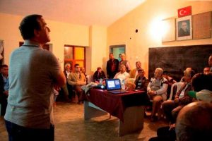 Eğitimlerin amacı, yangınları önlemek… Köy okullarında, ormanların içinde büyüyen çocuklara ve hayatlarını ormana adamış köylülere ulaşmak, onlara içinde yaşadıkları ekosistemin sağlıklı ve sürdürülebilir bir geleceği olmasının önemini anlatmak. Yorulmadan, sıkılmadan anlatıyor Vehbi Tutmaz, geçmiş yangınlardan bahsediyor, yangınların sebep olduğu can ve mal kayıplarını anlatıyor. Böylece “eğitim”, dinleyenlerin de içinde olduğu bir sohbete dönüşüyor.