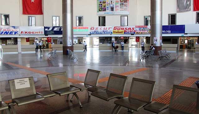Türkiye’nin normalleşme sürecinde, giriş çıkış yasağının kalktığı 7 il arasında bulunan Hatay Otogarı’nda, otobüs firmaları yolcularını bekliyor.