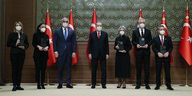 Törende konuşan Cumhurbaşkanı Erdoğan, büyüyen ve gelişen Türkiye’ye yakışır bir kültür ikliminin tesisi için emek sarf eden ilim, kültür ve sanat erbaplarının her birine teşekkürlerini iletti