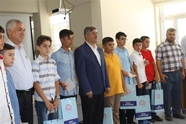 İl Müftüsü Kavillioğlu, öğrencilerin hediyelerini; İl Müftü Yardımcısı Cafer Erol, Antakya İlçe Müftüsü Necati Şafak, İl Müftülüğü Din Hizmetleri ve Eğitimi Şube Müdürü Mehmet Yolcu, Şehit M. Şenol Çiftçi İmam Hatip Ortaokulu Okul Müdürü Arif Ekşi ile birlikte takdim etti.