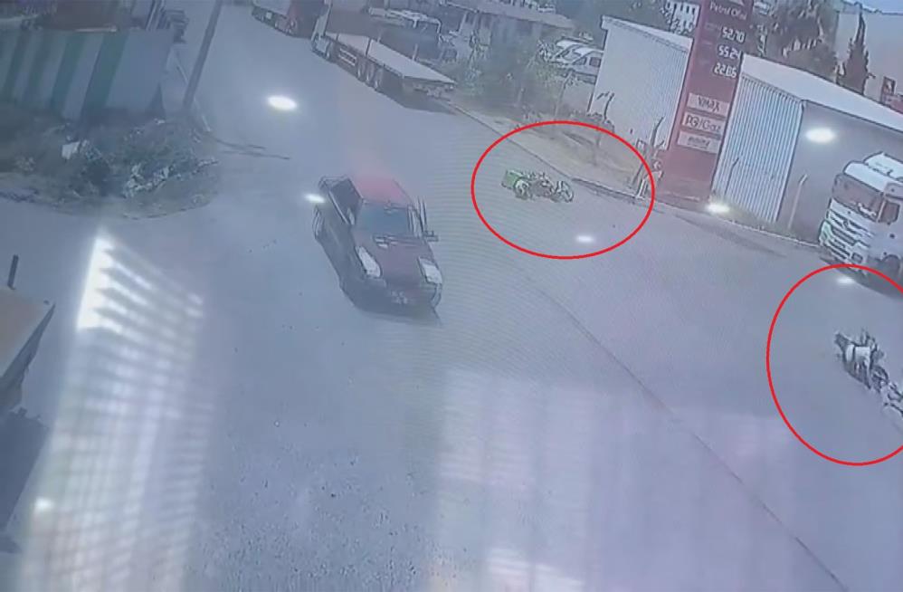 Olay anı çevredeki bir iş yerinin güvenlik kamerasına saniye saniye yansıdı. Görüntülerde, iki motosikletin hızla birbirine çarptığı, ardından sürücü ve yolcuların yere savrulduğu anlar net şekilde görülüyor. Kazanın ardından şahısların birbirlerine serzenişte bulundukları anlar da kayıtlara geçti.