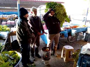 Sabahın 06:00’sından itibaren ayazda tezgahlarını kurmaya başlayan pazarcılar, soğuk hava nedeniyle oldukça mağdur olduklarını bildirdi, güç koşullarda çalışmak zorunda kaldıklarını ifade etti. Isınabilmek için teneke kutular içinde sebze ve meyve kasalarını yakan ve ateşin etrafında toplanan pazarcılar, biraz da olsa ısınabilmenin keyfini çıkarmaya çalışıyor.