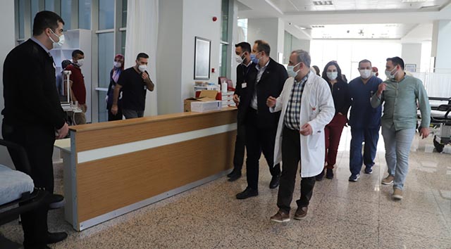 Hatay İl Sağlık Müdürlüğü Kamu Hastaneleri Hizmetleri Başkanı Dr. Ali Pekmezci, Hatay Devlet Hastanesi’ne gitti ve kovid mücadelesinde en önemli 3 birim olan; “Acil Servis, Yoğun Bakım ile Ek İzole Alan” yerlerinde incelemelerde bulundu. Kamu Hastaneleri Hizmetleri Başkanı Dr. Ali Pekmezci, Devlet Hastanesi ziyaretinde, Başhekim eşliğinde incelemede bulundu. Hatay Devlet Hastanesi Başhekimi Dr. Mahmut Bayrakçıoğlu, Başhekim Yardımcıları ve Hastane Yönetiminin de eşlik ettiği ziyaretinde, Dr. Ali Pekmezci; Hastane Yoğun Bakımı, Acil Servis ve yeni oluşturulan Kovid-19 İzole Alanlarını ziyaret etti, yerinde inceleme ve değerlendirmelerde bulunuldu.