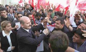İçişleri Bakanı Süleyman Soylu, geçtiğimiz gün ilimize geldi, Antakya’da, partisinin il başkanlığı binası önünde kalabalığa hitap etti. Partililerin sevgi seliyle karşıladığı Bakan Soylu, hükümetin ve tüm güvenlik kuvvetlerinin kararlılığı ve milletin iradesiyle PKK’nın adının bir daha bu ülkede anılmayacağının altını çizdi ve konuşmasını şöyle sürdürdü: “Birilerinin maşası olarak bu milletin canını çok yaktılar, çok. Ve bizi, evet bizi geri bırakabilmek için ellerinden gelen her şeyi yaptılar. Geçen gün Van’daydım, inanın, Van sokakları İranlı turistlerden geçilmiyor. Geçen sene gelememişlerdi terörden, ondan önceki seneler yine sıkıntıları vardı ama ifade etmek istiyorum ki memleketimizin her tarafında bunlarla öyle bir mücadele ediyoruz ki. Gabar’daydılar hava atıyorlardı, Şırnakta’ydılar, Hakkari’deydiler hava atıyorlardı, Cudi’deydiler hava atıyorlardı, evlatlarımız bütün dağlarda bunları kovalıyor, bunlar da sıçan gibi kaçıyorlar sıçan, sıçan gibi.” Türkiye’de geçmişte bir sistem kurulduğunu ve bu sistemle zengin bir Türkiye’ye ulaşma imkanı sağlanmadığını ifade eden Bakan Soylu, “Bir gün mezheplerimiz üzerinden bizi ayırıyorlar. Bir gün etnik kökenlerimiz üzerinden bizi ayırıyorlar. Bir gün ‘başı açık’, ‘başı örtülü’ diye bizi ayırıyorlar. Bir gün ‘sağcı’, ‘solcu’ diye bizi ayırıyorlar. İşte 16 Nisan’da, 1961’de de, 82’de kurdukları anayasayla bize hiç uymayan bir elbiseyle beraber, bu ülkeyi, kendilerinin kontrol ettiği, efendilerinin kontrol ettiği bir ülkeden uzaklaştıracağız. Milletin emanetine bırakacağız, millete, millete bırakacağız” diye konuştu.
