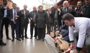 CHP Adayı’na kurbanlı karşılama yapıldı.