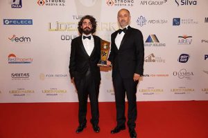Aykut Özbuğday, ödülünü, ünlü manken-oyuncu Özge Ulusoy ve ünlü oyuncu Emre Kınay’ın elinden aldı
