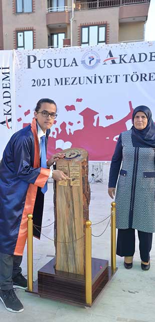Pusula Akademi Koleji Okul Müdürü Fikret Yolcu, açış konuşmasında, eğitim hayatı boyunca uyum ve gayretlerinden dolayı öğrencilere, onları en iyi şekilde yetiştiren öğretmen ve velilerine teşekkür etti. Konuşmaların ardından, ‘Türk Bayrağı’ ve ‘Okul Flaması Devir Teslim Töreni’ gerçekleşti. Okul 1,2 ve 3.sü olan öğrenciler, onları yetiştiren aileleri ile birlikte sahneye davet edildi. 3. ve 2. olan öğrencilere plaketleri, okul müdürü ve okul müdür yardımcısı tarafından teslim edildi. Pusula Akademi Koleji okul birincisi ise Yusuf Temizkan oldu