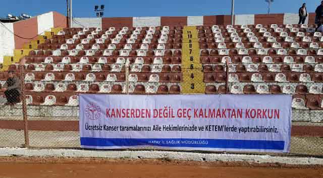 Hatay İl Sağlık Müdürlüğü, “Kanserle Mücadele” kapsamında etkinliklerini sürdürürken, son olarak “Rahim Ağzı Kanseri” ile ilgili toplumu bilgilendirici pankartları kentin belirli yerlerine, özellikle de spor salonunun olduğu alana asarak farkındalık yaratmayı hedefliyor.