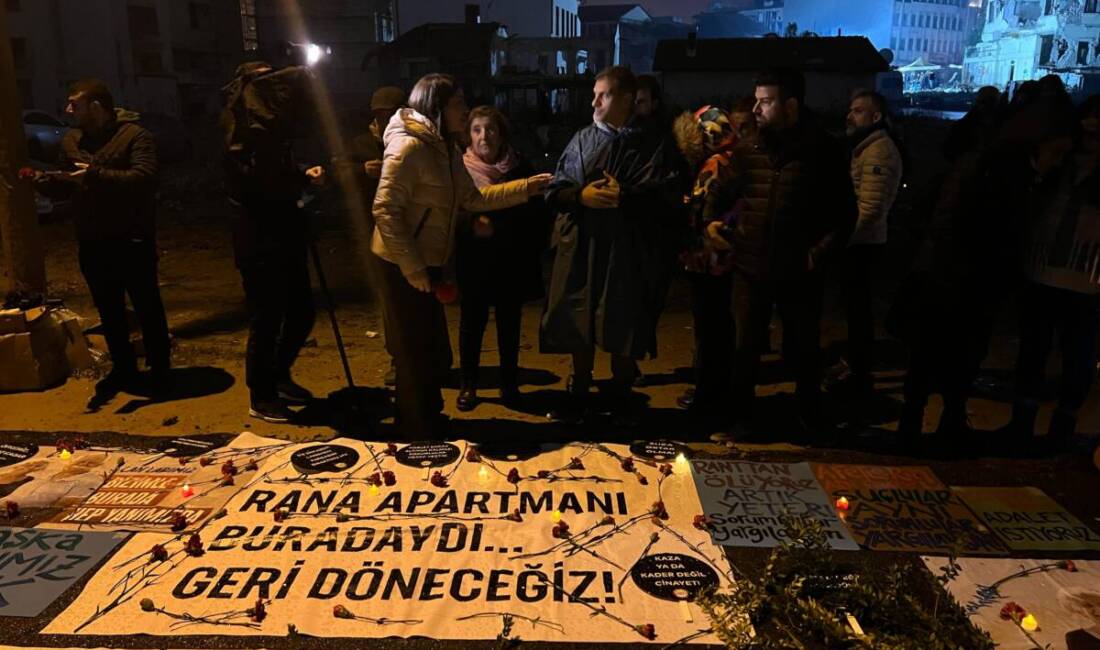 6 Şubat 2023 depremlerinin ikinci yıl dönümünde, Hatay’ın Antakya ilçesinde 32 kişiye mezar olan Rana Apartmanı önünde acılı aileler bir kez daha toplandı. Ellerinde pankart ve mumlarla adalet arayışlarını sürdüren Adalet Peşinde Aileleri Platformu, kaybettikleri sevdiklerini anarken yetkililere de hesap sorma çağrısı yaptı.