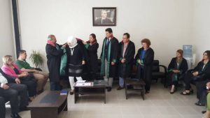 Yeni Avukat Gamze Turan’a cübbesini Av. Mehmet Saruhan ve Av. Ayşe Karaca giydirdi. Baro Başkanı Av. Ekrem Dönmez, yeni genç meslektaşını kutladı ve başarılar diledi. -Mehmet Özgün-