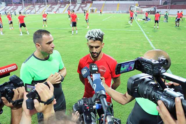Hatayspor Futbol Takımı, Pazartesi günkü Fenerbahçe maçı için hazırlıklarını sürdürüyor. Bordo-Beyazlılar, Perşembe günkü idmanı, maçın oynanacağı saate denk getirdi ve saat 20.00’de, Antakya Atatürk Stadı’nda çalıştı. Stadın yeni ışıklandırılmış ortamında idman yapan Hatayspor futbolcularından Ribeiro ile Pable Santos, idman öncesi gazetecilere röportaj verdi. Her iki futbolcu da Hatayspor’un başarısı için çalışacakları mesajını verdi. -Cemil Yıldız-