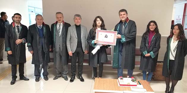 Staj dönemini başarı ile tamamlayan Stajyer Av Maide Visal Karataş, Kırıkhan Adliyesi’nde düzenlenen törenle ruhsatını Baro Başkanı Av. Ekrem Dönmez’in elinden aldı. Maide Visal Karataş’a cübbesini, yanında staj yaptığı meslektaşı Av. Beyhan Vefa Okyay ile Kırıkhan Belediye Başkanı Ayhan Yavuz giydirdi. Törene, meslektaşları ve aileleri katıldı. Baro Başkanı Dönmez, aralarına yeni katılan genç meslektaşını kutladı ve başarı diledi.