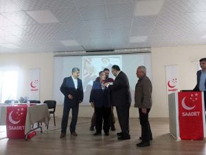 Konuşmalardan sonra, Saadet Partisi’ne yeni katılımlar gerçekleşti ve yeni üyelere rozetleri takıldı.