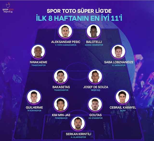 Süper Lig’de ilk 8 haftanın en iyi 11’i şu şekilde