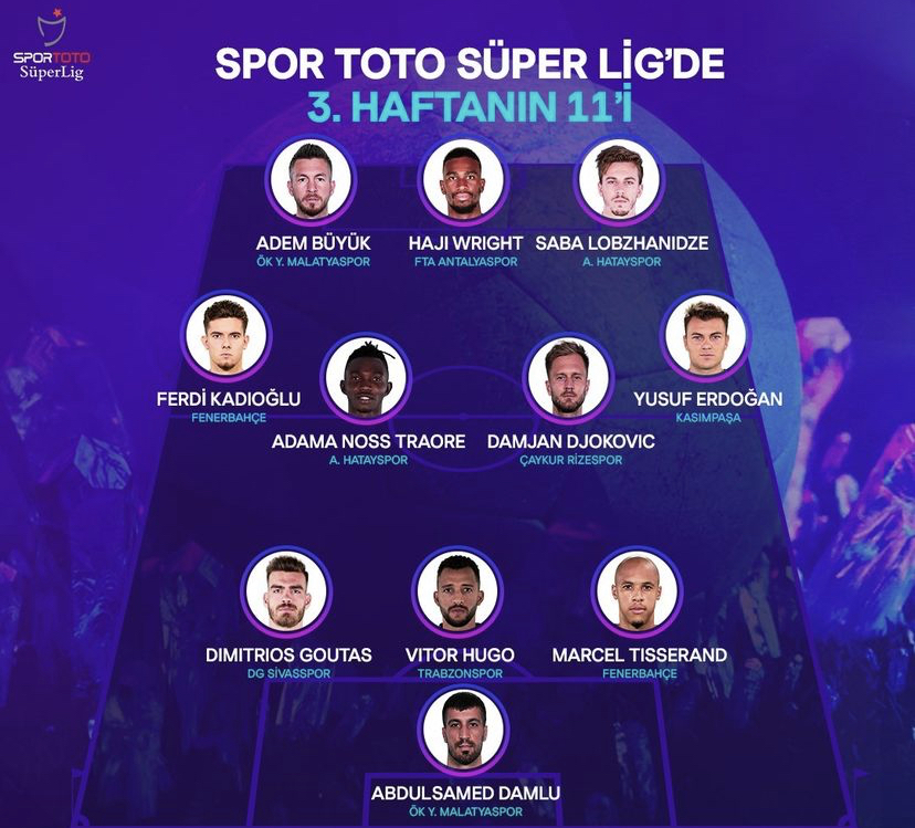 Alanyaspor karşısında elde edilen 5-0’lık galibiyetin mimarlarından olan Saba Lobjanidze ve Adama Traore de bu kadroda kendilerine yer buldular. Haftanın 11’i şu şekilde: