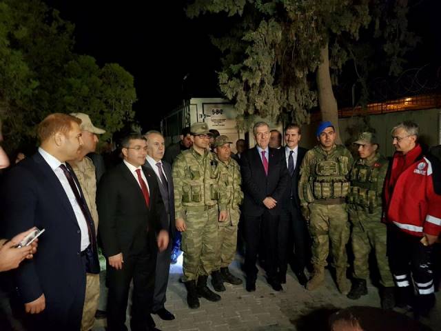“Haklı bir müdahale bu. Uluslararası hukuktan doğan hakkını kullanıyor. Bu müdahale esnasında yaralanan, şehit olan askerlerimiz oluyor. Aynı şekilde, karşı taraftan Kilis ilimiz ve ilçelerine, Hatay ilimiz ve ilçelerine roketlerle saldırılar vaki oluyor. Onların yaraladığı, hayatını kaybeden insanlarımız oluyor. Yaralıların iyileştirilmesi için burada görev yapan hekim arkadaşlarımızı takdir etmek için elimizden gelen katkılar sağlandı. Planlandığı şekilde burada hekimlerimiz görev yapıyor. Biz de kendilerini yerinde ziyaret etmek istedik, herhangi bir ihtiyaçları, sıkıntıları var mı diye… Gördük ki, hekim arkadaşlarımız gayet güzel, moralleri yerinde ve fevkalade başarılı bir şekilde hizmetlerini sürdürüyorlar. Her türlü destek kendilerine veriliyor. Hemşire kardeşlerimiz, sağlık çalışanlarımız, tümüyle hekim arkadaşlarımızla birlikte bu çalışmayı sürdürüyorlar. İnşallah Türkiye, kendisine karşı gerçekleştirilen bu saldırıların üstesinden en kısa zamanda gelecek, hak eden hak ettiği cezayı görecek.”