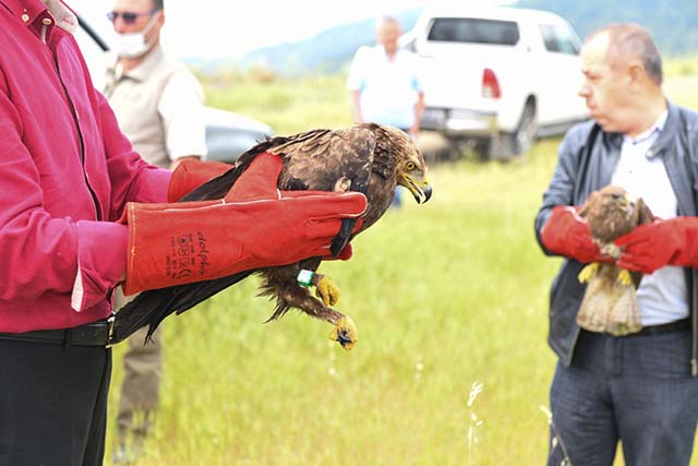 Üç şahin kuşu doğaya özgür bırakma etkinliğine; Tarım ve Orman Bakanlığı DKMP Hatay Şube Müdürü Cüneyt Çağlar, Veteriner Hekim İsmail Eminoğlu (DKMP) ile Hatay Mustafa Kemal Üniversitesi’nden Prof. Dr. Mehmet Yaman ve Doç. Dr. Cafer Tayer İşler katıldı. -Selvi Günay-