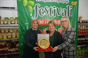 Yemek konusunda uzman isim Sahrap Soysal, Altınözü Zeytin ve Zeytinyağı Festivali’ne katılmak üzere geçtiğimiz hafta sonu ilimize geldi. Cuma günkü festival açılışına protokol ile birlikte katılan ünlü yemek uzmanı Sahrap Soysal’a, festivale renk katması dolayısıyla Altınözü Kaymakamlığı ve Altınözü Belediyesi plaket verdi, zeytin ile zeytinyağı hediye etti.