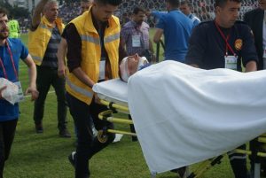 -Hatayspor’un santrforu Taha, Kastamonu maçı ilk yarısında rakibiyle girdiği hava mücadelesi sırasında kafa kafaya çarpıştı, kanlar içinde yerde kaldı, ambulansla hastaneye kaldırıldı, kafası sargıya alındı ve MR’ı çekildi. Kırık ya da çatlak yok, ancak kanama olasılığına karşı tedavi sürecek.