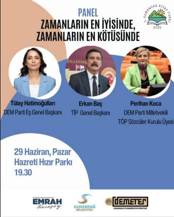 Panele, Türkiye’nin önemli siyasi isimleri katılıyor. DEM Parti Eş Genel Başkanı Tülay Hatimoğulları, Türkiye İşçi Partisi (TİP) Genel Başkanı Erkan Baş ve DEM Parti Milletvekili, aynı zamanda Toplumsal Özgürlük Partisi (TÖP) Sözcüler Kurulu Üyesi Perihan Koca konuşmacı olarak yer alacak.