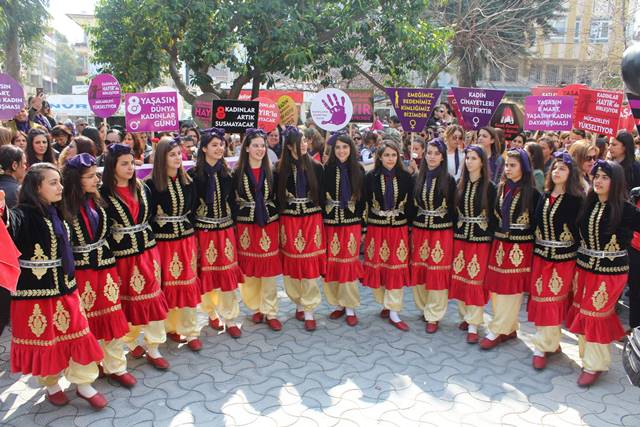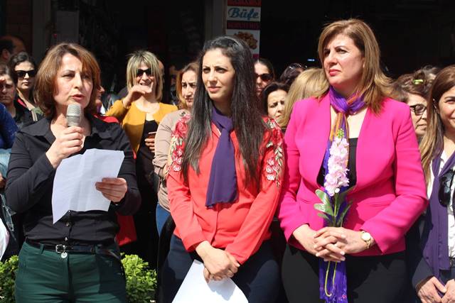 “Sevgili Kadınlar… Bizler; erkek şiddetine, cinayetlere, tacize, tecavüze, cinsel istismara ve istismarı meşrulaştırmaya çalışanlara karşı birlikte güçlüyüz. Son yıllarda kadına yönelik şiddet, kadın cinayetleri, cinsel şiddet, çocuk istismarı, kadın işsizliği arttı ve artmaya devam ediyor. Ülkemizdeki savaş ortamının yanında, Türk Silahlı Kuvvetleri’nin Suriye’ye girmesiyle, gençlerimizin ölü bedenleri annelerinin kucağına teslim ediliyor. Bizler artık acı istemiyoruz, savaşa da ‘Hayır’ diyoruz. ‘Emeğimiz, bedenimiz ve kimliğimiz bizimdir’ diyerek yıllardır yürüttüğümüz mücadelemize sahip çıkıyoruz. 8 Mart’ ta tekçiliğe, cinsiyetçiliğe, ayrımcılığa ve faşizme karşı itirazlarımızı büyütüyoruz, diktatörlük rejimine ‘Hayır’ diyoruz.