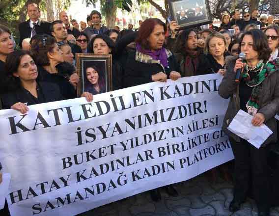 “Basında yer alan sıradan bir haber olmasın hiç biri ve basın, Buket Yıldız kadın cinayetinde olduğu gibi; gerçeği yansıtmayan, magazinsel bir boyuta indirgeyen ve kadına şiddeti adeta meşru kılan bir dil kullanmasın. Katiller, bir takım adli tiyatrolar ve mizansenler ile hafifletici sebeplerle mazur görülmesin ve en ağır ceza verilsin. Bizler, Hatay’daki bütün kadın kurumları, Buket ve Zeynep’in katili en ağır cezaya çarptırılana kadar davanın takipçisi olacağız. Bir kişi