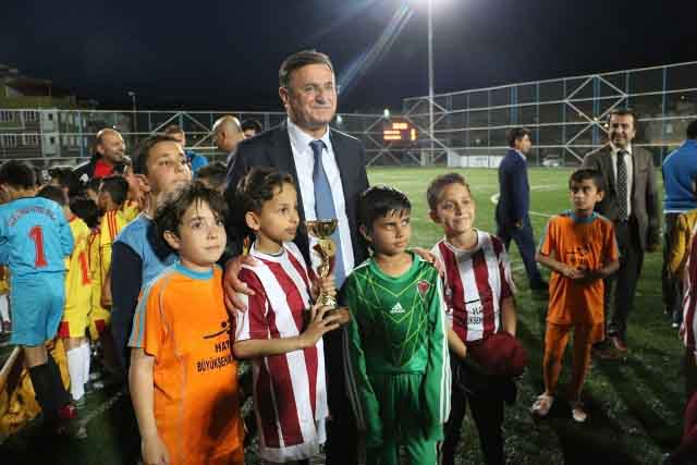 Hatay Büyükşehir Belediyesi (HBB) tarafından geleneksel olarak düzenlenen 23 Nisan Ulusal Egemenlik ve Çocuk Bayramı Futbol Turnuvası, gerçekleşen görkemli kupa töreniyle sona erdi. Antakya ve İskenderun olmak üzere iki merkezde gerçekleşen 21 takımınlı Turnuva’da, finalde Hatayspor’u 3-2 yenen