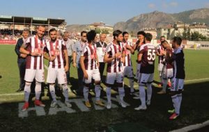 Hatayspor, 2016-2017 sezonu Türkiye 2. Ligi şampiyonluk kupasını önceki gün aldı. TFF Temsilcisi Hatay’a geldi ve şampiyonluk kupasını Hatayspor yönetici ve futbolcularına verdi. TFF temsilcisi, bu arada şampiyon kadrodaki Hatayspor futbolcuları ile yöneticilerine de birer madalya dağıttı. -Cemil Yıldız-