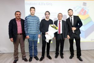“Endüstri 4.0’a Giriş” başlıklı sunumunda; ICC Elektronik San. Tic. Ltd. Şti. Operasyon Direktörü ve Endüstri 4.0 Konsept Danışmanı Taner Yiğit, elektronik alanında Endüstri 4.0 uygulamaları hakkında bilgiler verdi. Verdiği örnekler ve sorduğu sorularla katılımcıları konferansa kilitleyen Yiğit’e, İSTE Sosyal Sorumluluk Projeleri Koordinatörü Yrd. Doç. Dr. Mehmet Naz tarafından çiçek takdiminde bulunuldu.