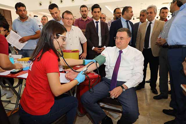 Türk Silahlı Kuvvetleri’nin (TSK), Suriye’nin kuzeyinde güvenli bölge oluşturma adına başlattığı Barış Pınarı Harekatı sırasında ihtiyaç duyulma olasılığına karşı, Kızılay tarafından kan bağışları kabul edilirken, dün sabah Hatay Büyükşehir Belediye (BŞB) Başkanı Lütfü Savaş ile Büyükşehir yönetici kadrosu ve personeli de bu kapsamda kan verdi.