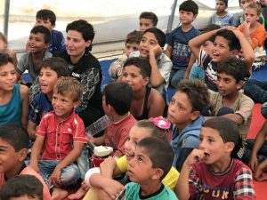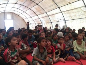 Savaş mağduru çocuklar çadırkent içinde yaşadıkları acıları unutarak, güle eğlene çizgi film izledi, oldukça keyifli anlar yaşadı.