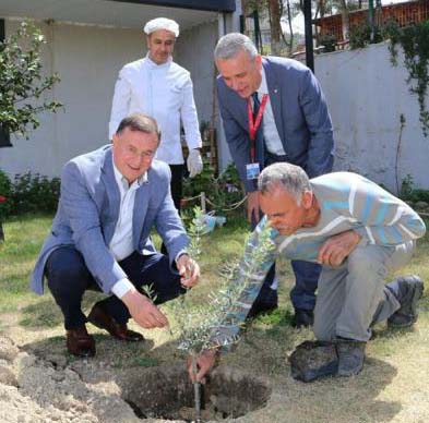 “İskenderun Bahçeşehir Koleji’nde değerli öğretmenlerimizi ve öğrenci gençlerimizi ziyaret edip zeytin ağacı fidanı diktik. Nazik ve anlamlı hediyelerinden dolayı teşekkür ederim.”