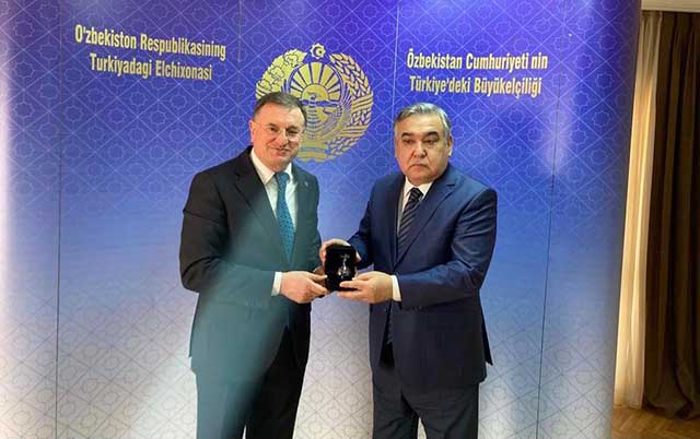 “Özbekistan Büyükelçisi Sayın Alisher Agzamkhodjaev’i ziyaret ettim. EXPO 2021 Hatay ve ticari ilişkiler üzerine görüşme gerçekleştirdik. EXPO organizasyonuna davetimizi ilettiğimiz Sayın Agzamkhodjaev’in, organizasyonumuza katılacaklarını belirtmelerinden büyük memnuniyet duyduk.” -Cemil Yıldız-
