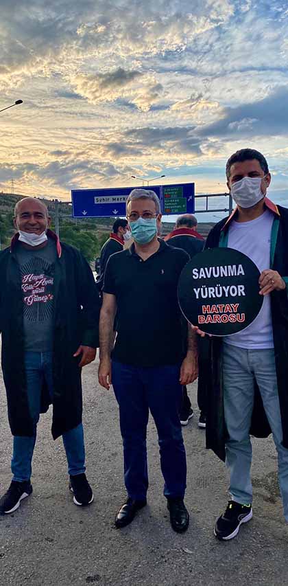 Ankara’ya doğru “savunma yürüyüşü” başlattı. Hatay, İstanbul, İzmir, Antalya, Aydın Baroları başta olmak üzere, Türkiye genelindeki 80 Barodan 50 Baronun Başkan ve Avukatlarının başlattığı yürüyüşle, Türkiye’deki yargı bağımsızlığı ve adil yargılama konusunda yaşanan sıkıntılara dikkat çekilmek istendi.