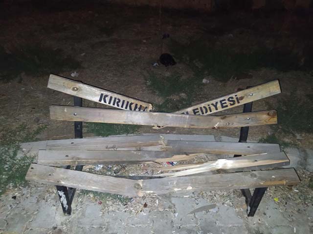 Kırıkhan Belediye Başkanı Ayhan Yavuz, sosyal medya hesabından yaptığı paylaşımında, şehir magandalarına, milli servet düşmanlarına bir kez daha dikkat çekti, uyarılarda bulundu. Başkan Yavuz, paylaşımında, parklardaki banklara zarar veren magandaların en şiddetli bir şekilde cezalandırılacağını bildirdi, bu eylemi gerçekleştirenlerin vatan hainlerinden farkı olmadığını ifade etti. Ali KÜÇÜK -Stajyer Öğrenci-