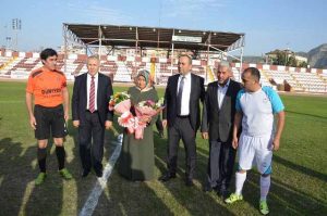 Pazartesi günü Antakya Atatürk Stadı’nda oynanan final maçı öncesi, Şehidin annesi Emine Güler ile Şehidin babası Reşit Güler’e, Vali Erdal Ata ve Başsavcı Ahmet Tekne çiçek takdim etti.