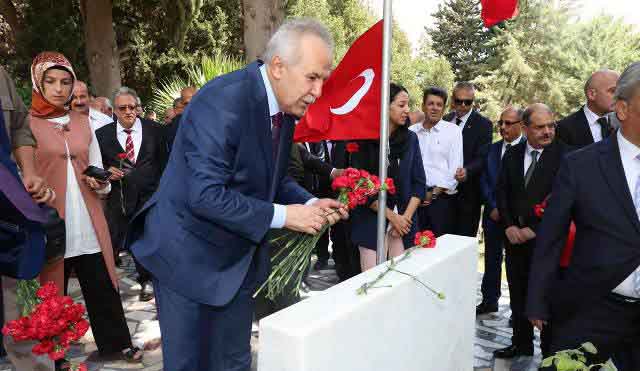 15 Temmuz Şehitleri Anma, Demokrasi ve Milli Birlik Günü etkinlikleri kapsamında, Pazar günü Şehitlik ziyareti gerçekleştirildi. 15 Temmuz Pazar günü saat 11.00’de gerçekleşen Şehitlik ziyaretine, Vali Ata yanı sıra Hatay Milletvekili Sabahat Özgürsoy Çelik, 2. Hudut Alay Komutan Vekili Albay Muzaffer Dinç, Adli Yargı Adalet Komisyon Başkanı Ahmet Turan Oral, Mustafa Kemal Üniversitesi Rektörü Prof. Dr. Hasan Kaya, Vali Yardımcıları Nursal Çakıroğlu, Mahmut Hersanlıoğlu, Bilal Ölmez ve Meral Batı Demirbaş, Antakya Kaymakamı Eflatun Can Tortop, Defne Kaymakamı Nevzat Şengök, İl Jandarma Komutan Vekili Alb. Haşim Göksel, İl Emniyet Müdürü Kamil Karabörk, Antakya Belediye Başkanı İsmail Kimyeci, HESOB Başkanı Abdulkadir Teksöz, kurum il müdürleri ile Şehitlerimizin yakınları, Şehit ve Gazi Derneklerinin temsilcileri hazır bulundu. -Yusuf Cemil Karaçay-