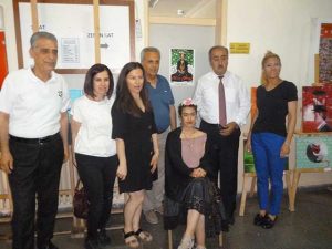 Müdür Gülistan, daha sonra, yıl içerisinde yapılan çalışmaların yer aldığı sergiyi gezerek, öğretmen ve öğrencilerden sergide yer alan çalışmalarla ilgili bilgi aldı. -Cemil Yıldız-