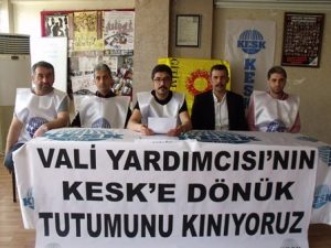 Hatay KESK Şubeler Platformu adına Deniz Polat, dün yaptığı açıklamada, geçtiğimiz gün, yeni seçilen yönetim kurulu olarak, heyet halinde, tanışma ve ilimizdeki eğitim, sağlık ve benzeri sorunları, istekleri iletmek üzere Vali Yardımcısı Mahmut Hersanlıoğlu’nu makamında ziyaret ettiklerini, sendikaları ve konfederasyonları adına talepleri, haksız uygulamaları ilettiklerini söyledi. Polat, ancak, görüşme esnasında, orada bulunuş amaçlarına ilişkin izahatları dinlemeden Vali Yardımcısı Hersanlıoğlu’nun kendilerini kaba bir üslupla makam odasından çıkardığını iddia etti.