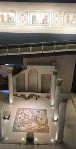 J.N. >> Müzenin yeni bölümü var! Koridoru boyunca duvarda kocaman eski bir haritanın uzandığı yerden bahsediyorum. O kısımdan yukarıya çıktığınızda, kocaman bir salona giriyorsunuz. Orta yerde muhteşem bir mozaik var. Büyük de bir mozaik. Ama nedense, ismi yok, bilgisi yok, tabelası yok. Yeni bir mozaik mi? Belki ondan!